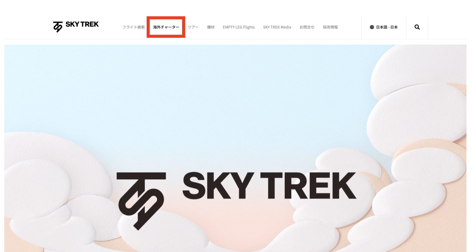 *SKY TREK Webサイトのトップ画面「海外チャーター」からも遷移可能です。